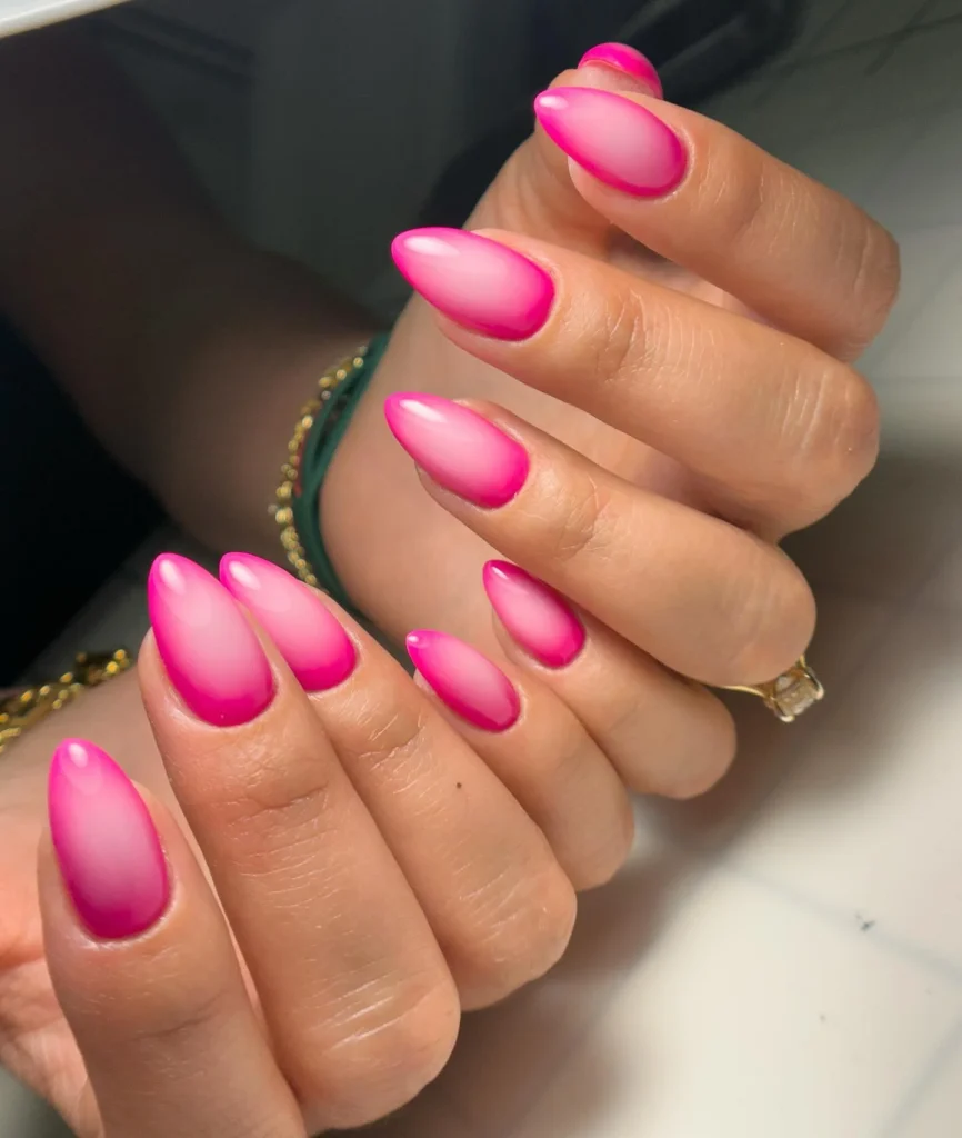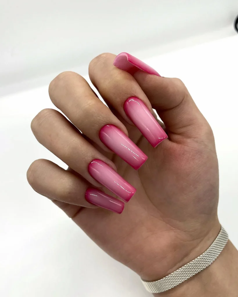 The way this gradient melts from soft pink to deep rose is pure magic. It’s elegant, smooth, and impossibly glossy, like glass captured in color.