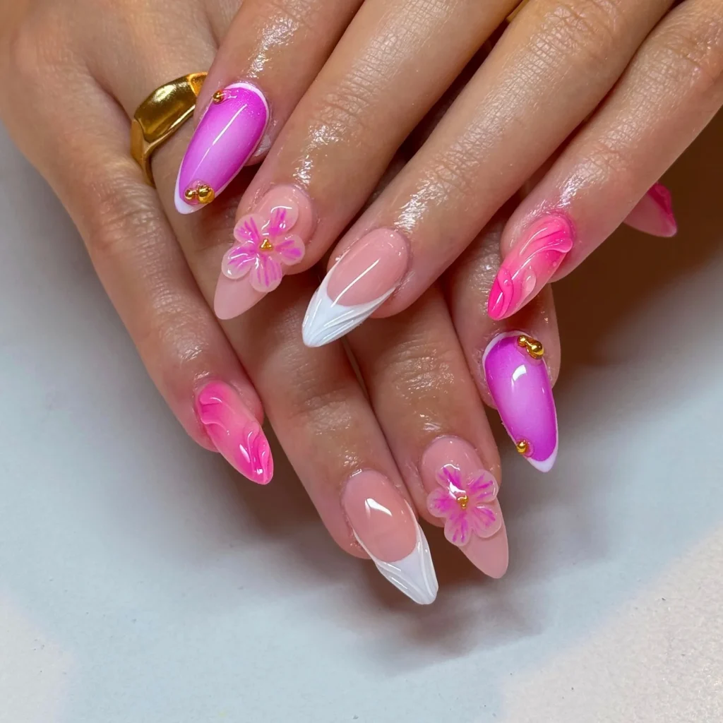 Honestly, this might be my favorite combo yet — bright, bold, and confident. The deep pink fade at the edges gives that “lit from within” glow that’s so mesmerizing.