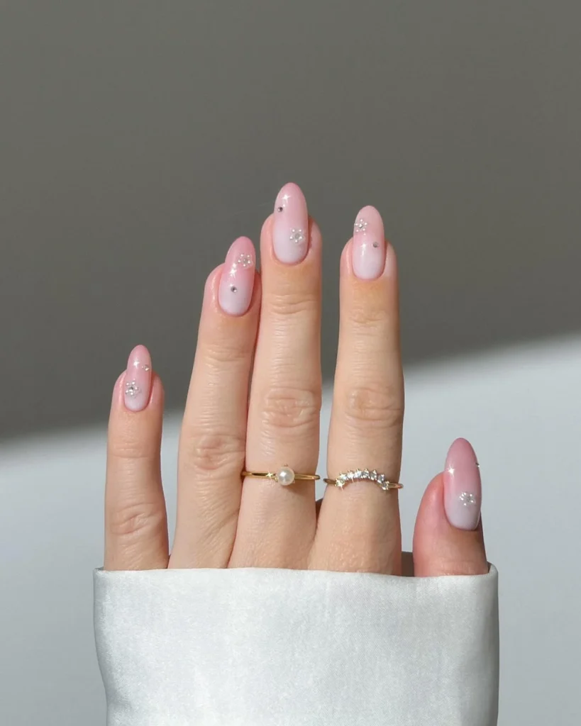 Whenever I wear designs like this, I feel instantly elegant. The glossy pink base with tiny pearl accents is pure grace quiet, soft, and timeless. It’s the kind of nail look that whispers luxury without saying a word.