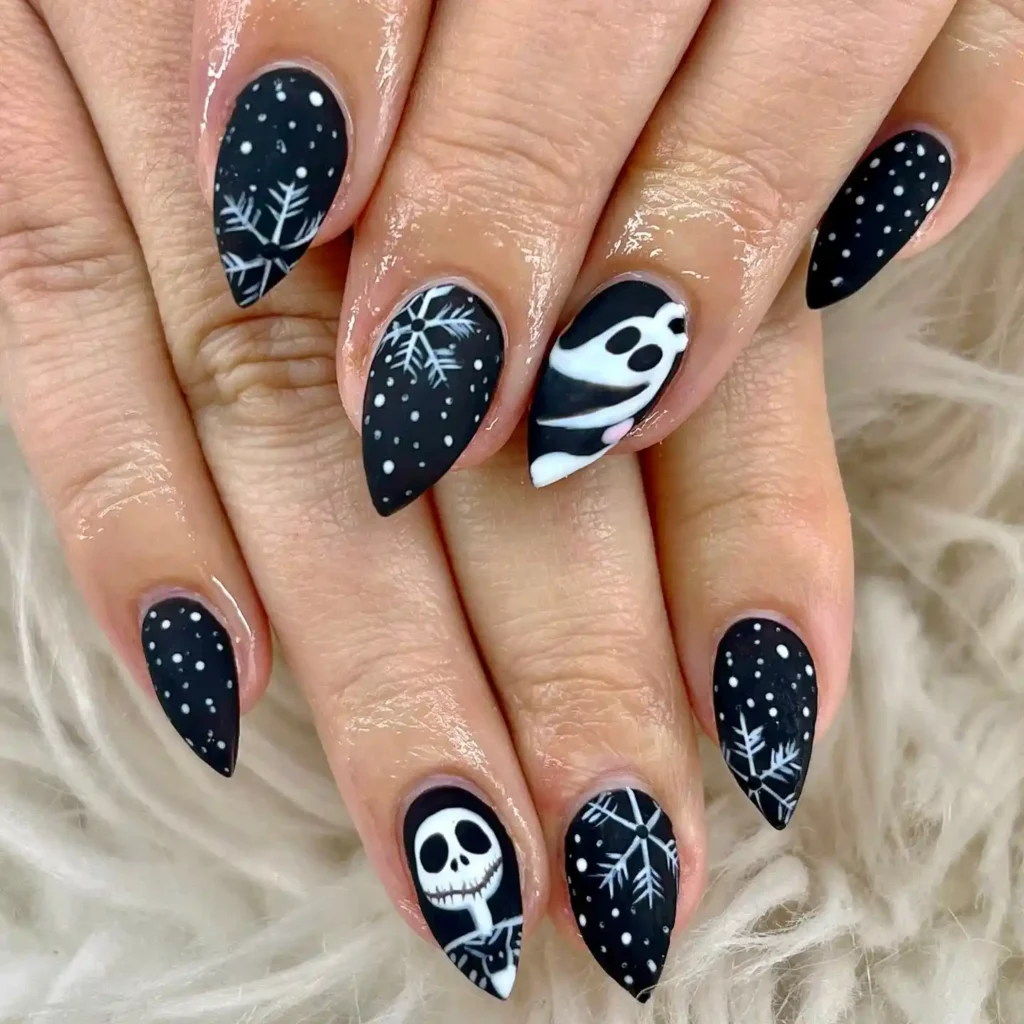 #15. Haunted Snowflake Nail Night Before Christmas