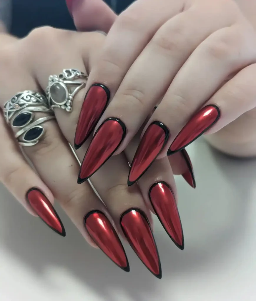 #7. Vampy Outlined Red Chrome Nail Stilettos