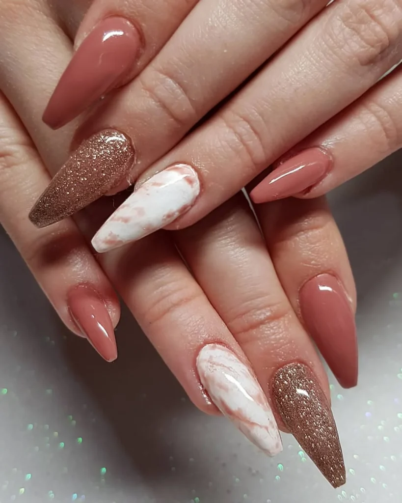#15. Earth-Toned Ballerina Nails in Fall Shades