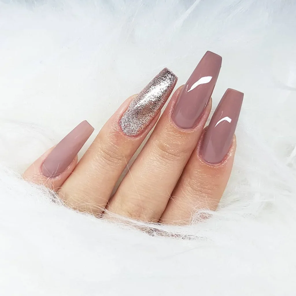 #2. Mauve and Nude Ballerina Nails with Glitter