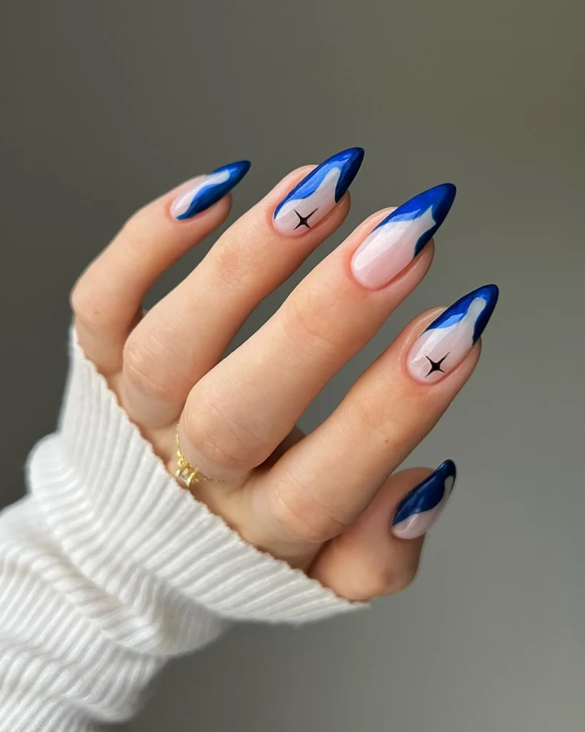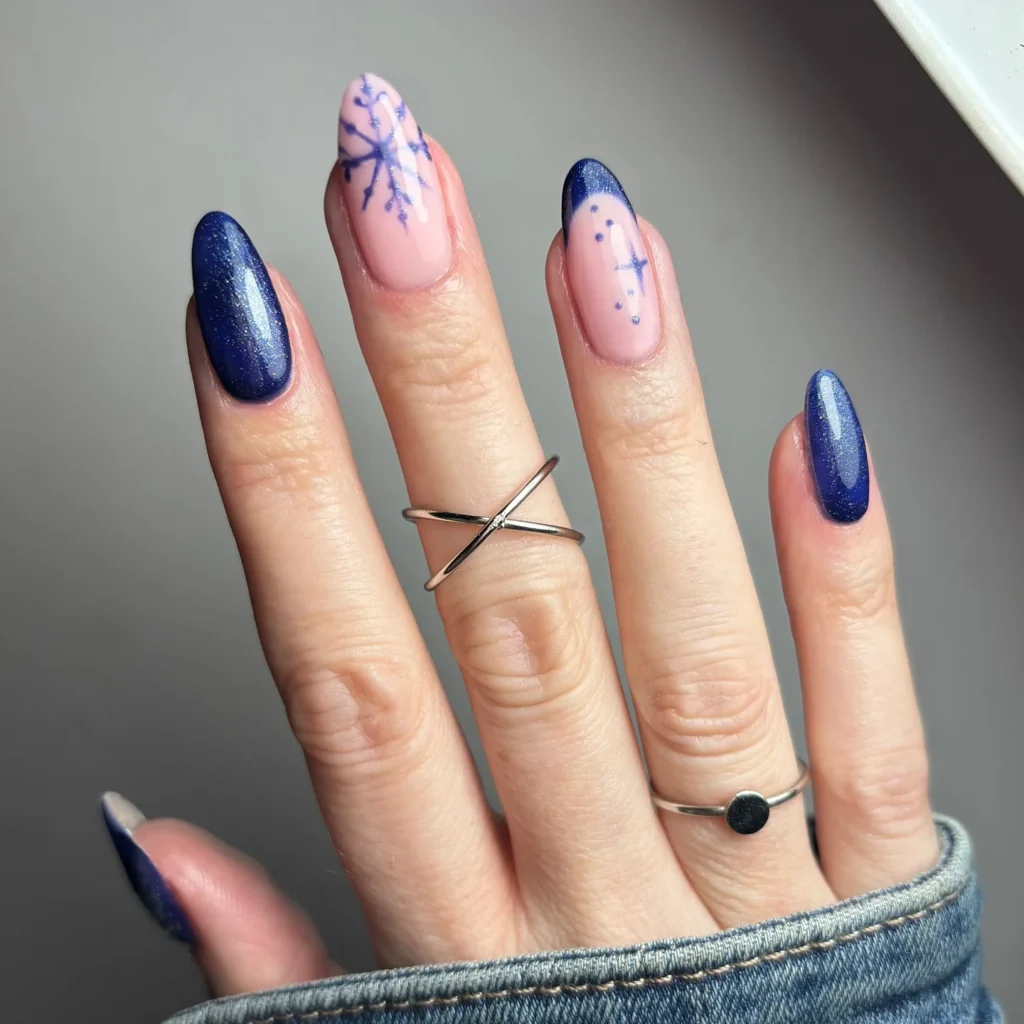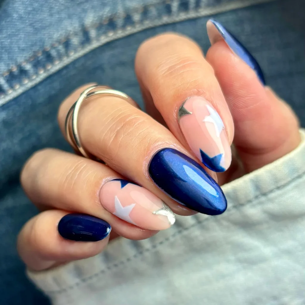 These nails remind me of starry skies on crisp winter nights. The mix of solid blue and star-shaped accents feels playful yet dreamy. It’s a perfect choice for anyone who loves cosmic-inspired nail art that’s still totally wearable.