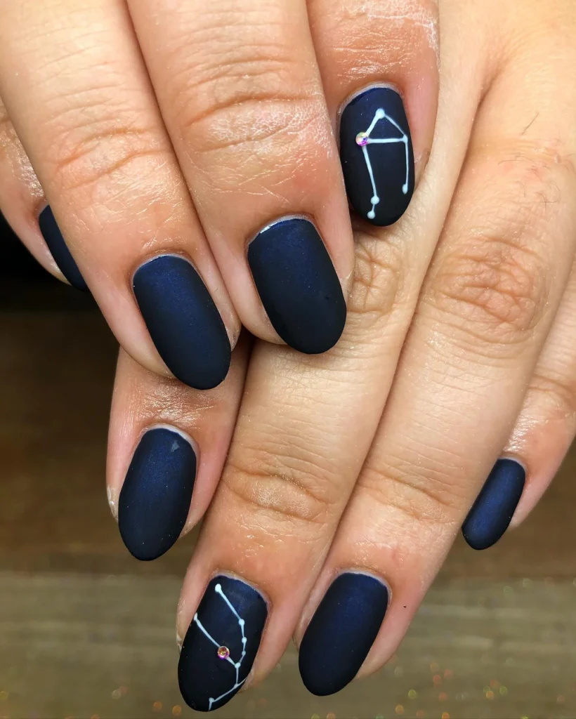 Whenever I wear designs like this, I feel like I’m carrying a little piece of the night sky with me. The matte navy base with fine white constellations feels delicate yet powerful. It’s cosmic calm in a manicure.
