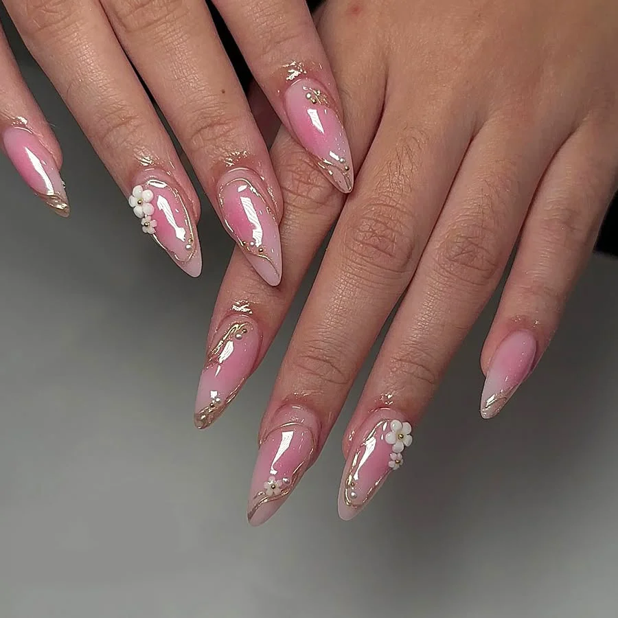 #13. Golden Blossom Pink Nail Glow