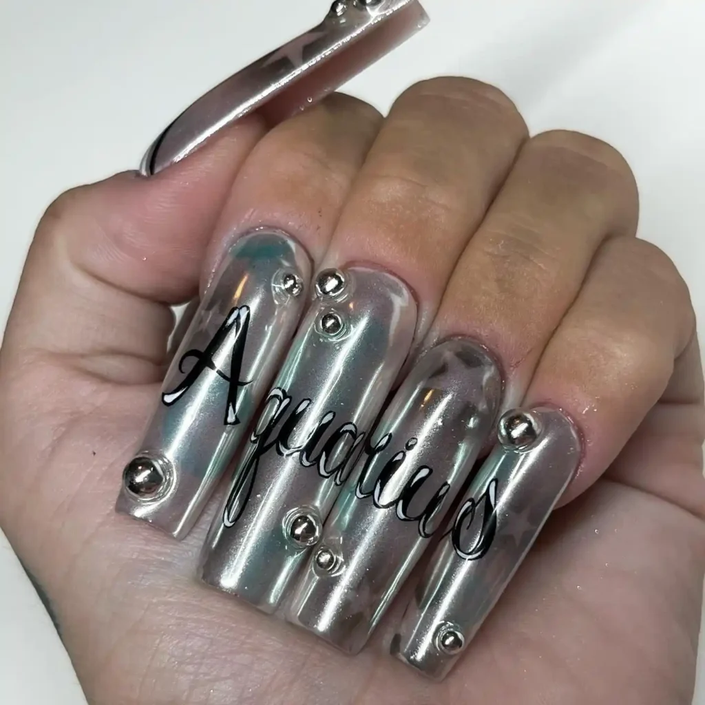 #17. Chrome Silver Aquarius Nails With Spacey Studs