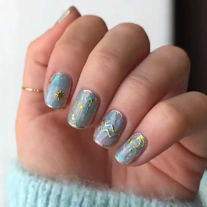 #12. Aquarius Constellation Nails With Tiny Details