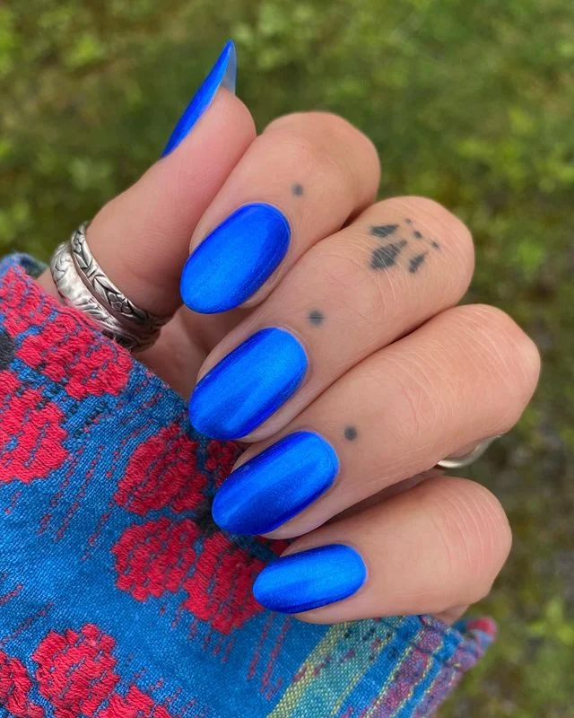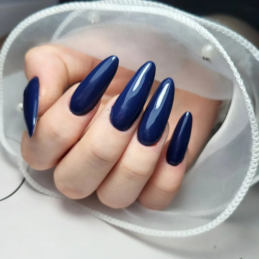 This one’s all about power and simplicity. The deep blue shade is so striking on its own — it doesn’t need glitter or gems to stand out. I’d wear this to literally anything, from a workday to a night out, because it screams polished and confident without trying too hard.