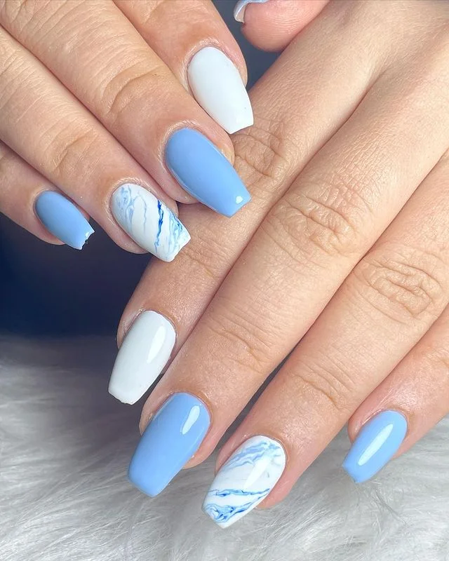 #9. Blue Swirl Nail Design