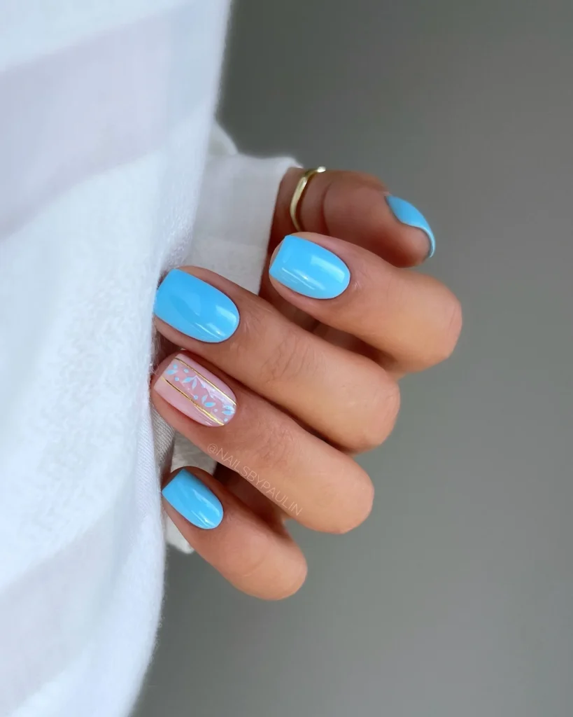 #8. Pastel Blue Accent Nail Art