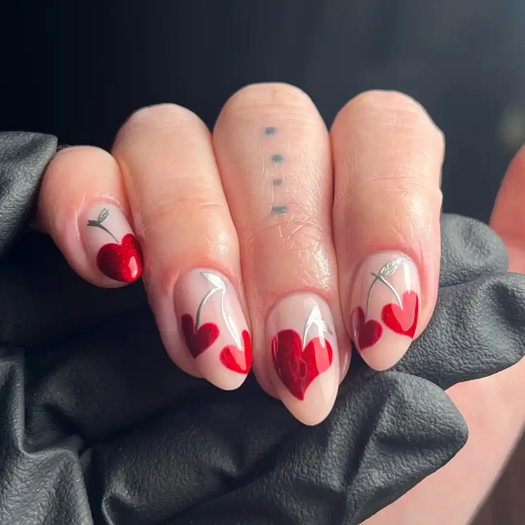 20 Cherry Heart Nail Ideas That Are Sweet and Fun