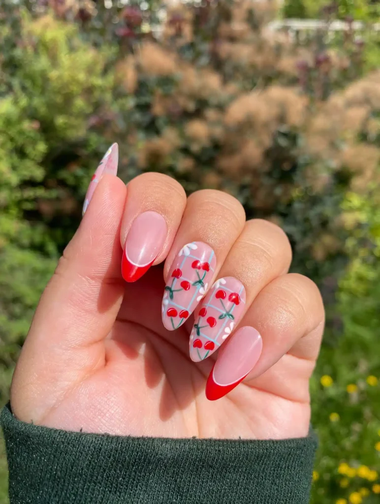 #9. Playful Cherry French Tips With a Bright Red Pop