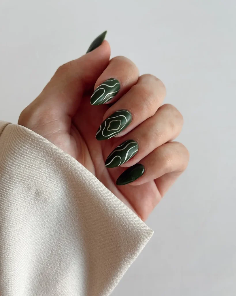 I picked a deep green base for a more earthy style. Fine white lines create a marble effect that looks like natural stone.
