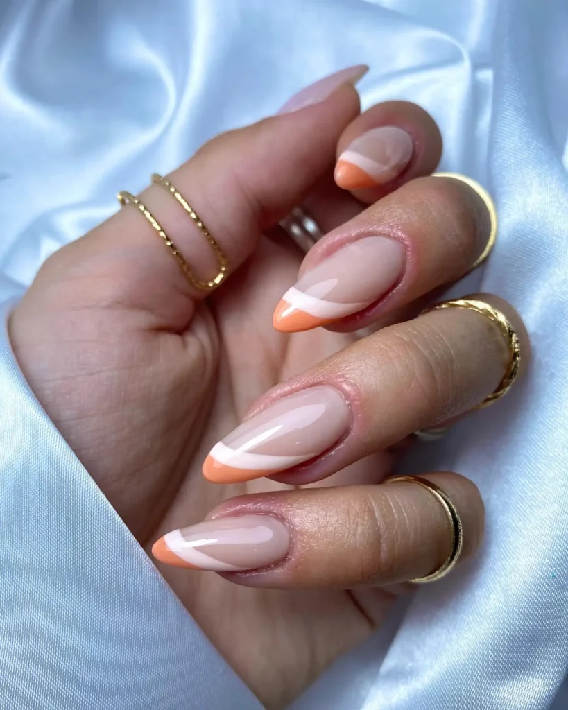 #11. Peach French Tip Almond Nails