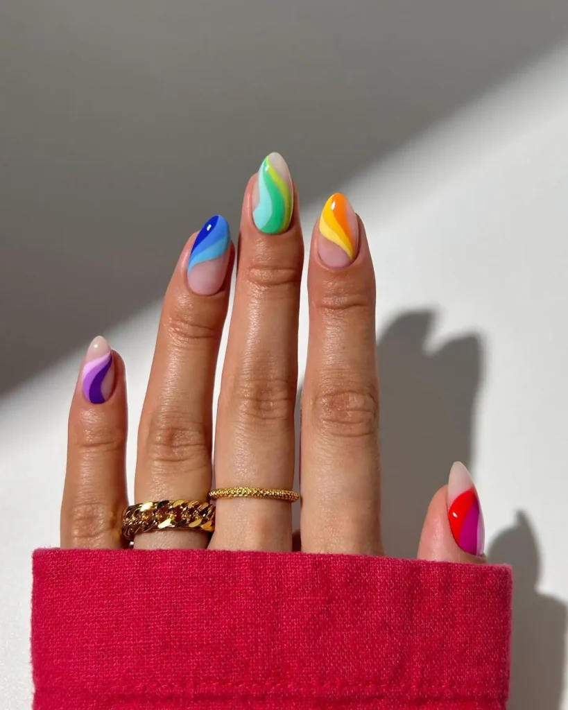 #7. Multicolor Swirl Almond Nails