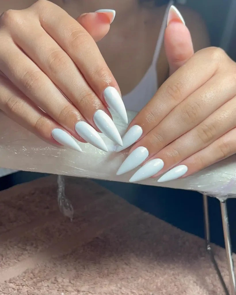 These stiletto whites are crisp and bold. The glossy finish makes the shape look sharper. I like how the clean color keeps the drama balanced. Simple, but not shy.