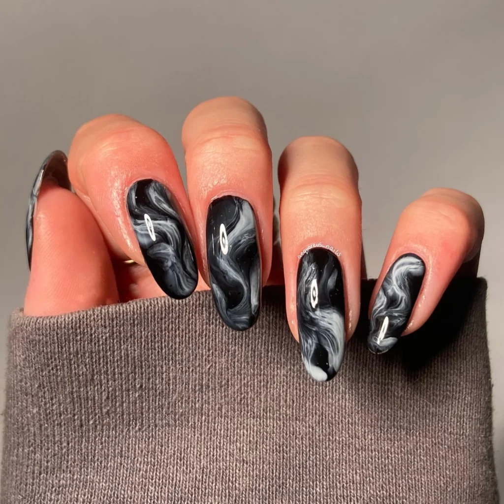 #10. Black and White Marble Nails