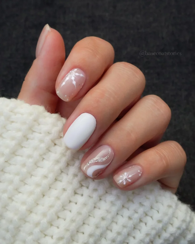 #16. White and Nude Winter Mix Nails
