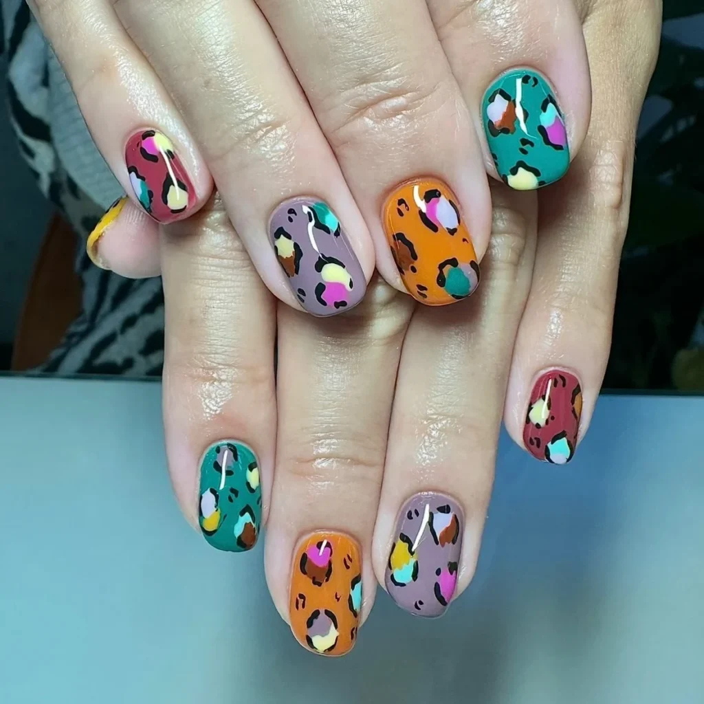#4. Colorful Leopard Print Nails