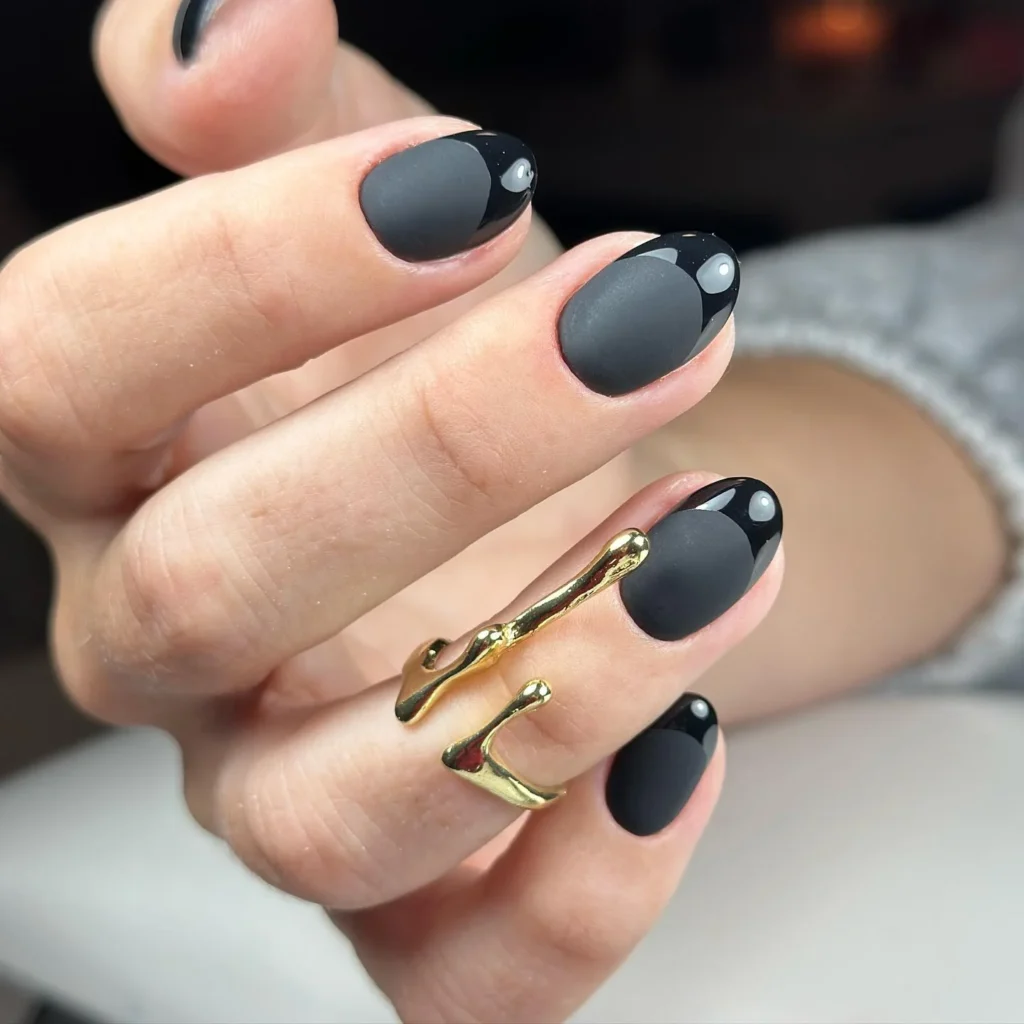 Matte black paired with glossy tips is the kind of contrast you didn’t know you needed until now. It’s sleek, modern, and a little rebellious, the type of style that looks equally chic with a cashmere sweater or a leather jacket.