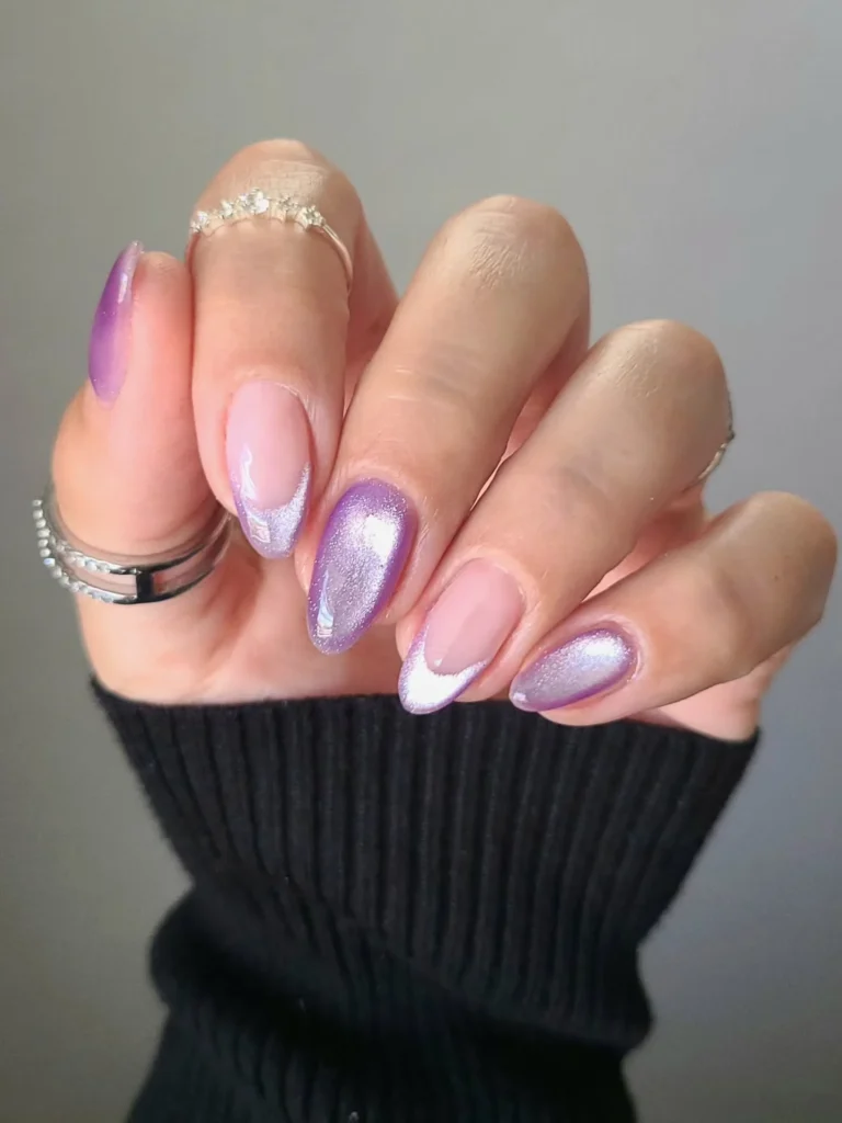#9. Lavender Chrome Nails with Shimmer French Tips