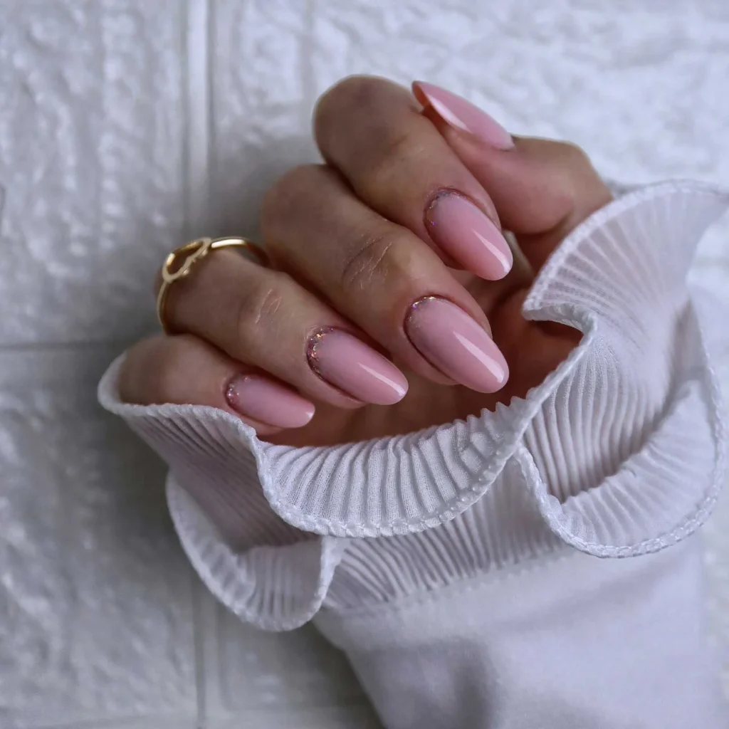 #5. Blush Pink Oval Nails with Subtle Sparkle