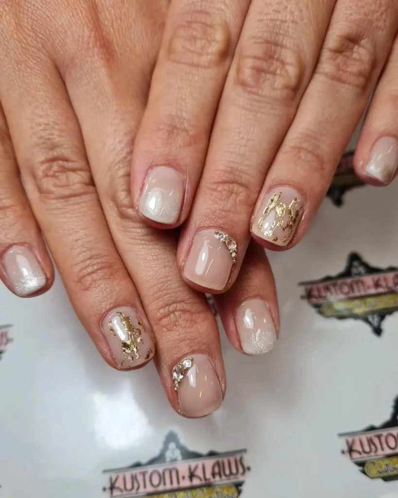 #1. Nude Short Nails with Gold Foil Accents
