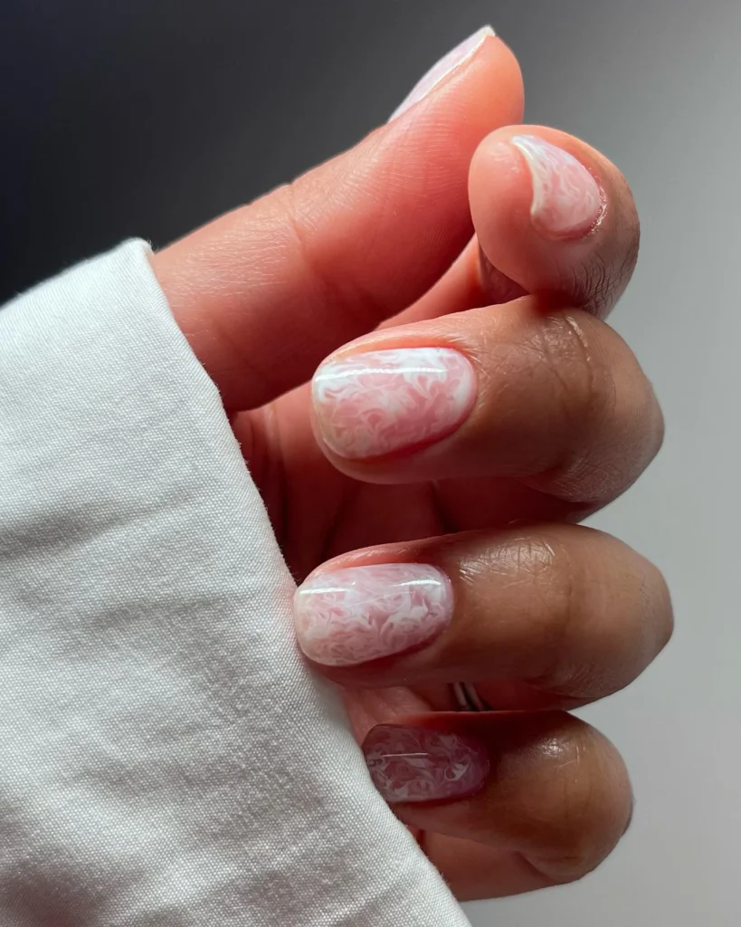 #7. Short Marble White Swirl Nails