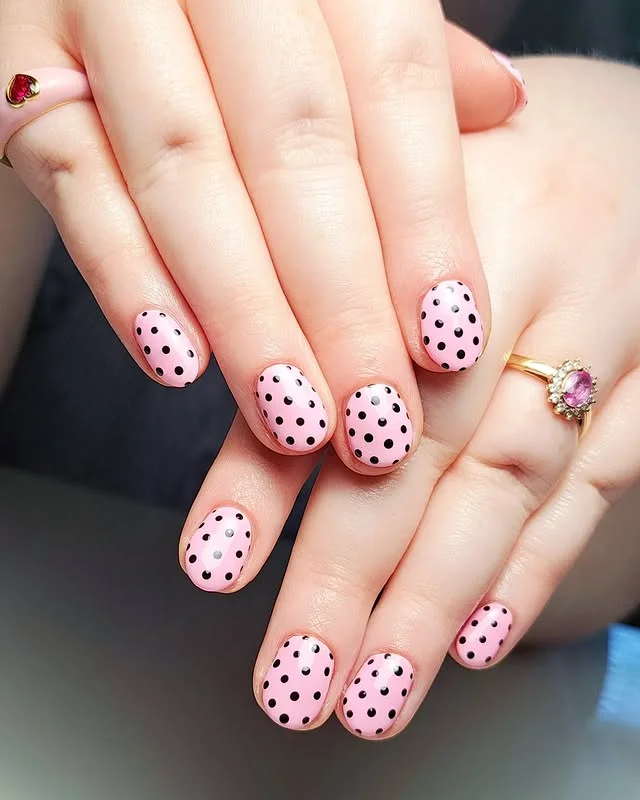 These soft pink nails with neat black polka dots are the definition of cute-meets-classy. They give off retro Barbie vibes while still being subtle enough for everyday wear. Honestly, it’s like candy on your fingertips without the sugar rush.