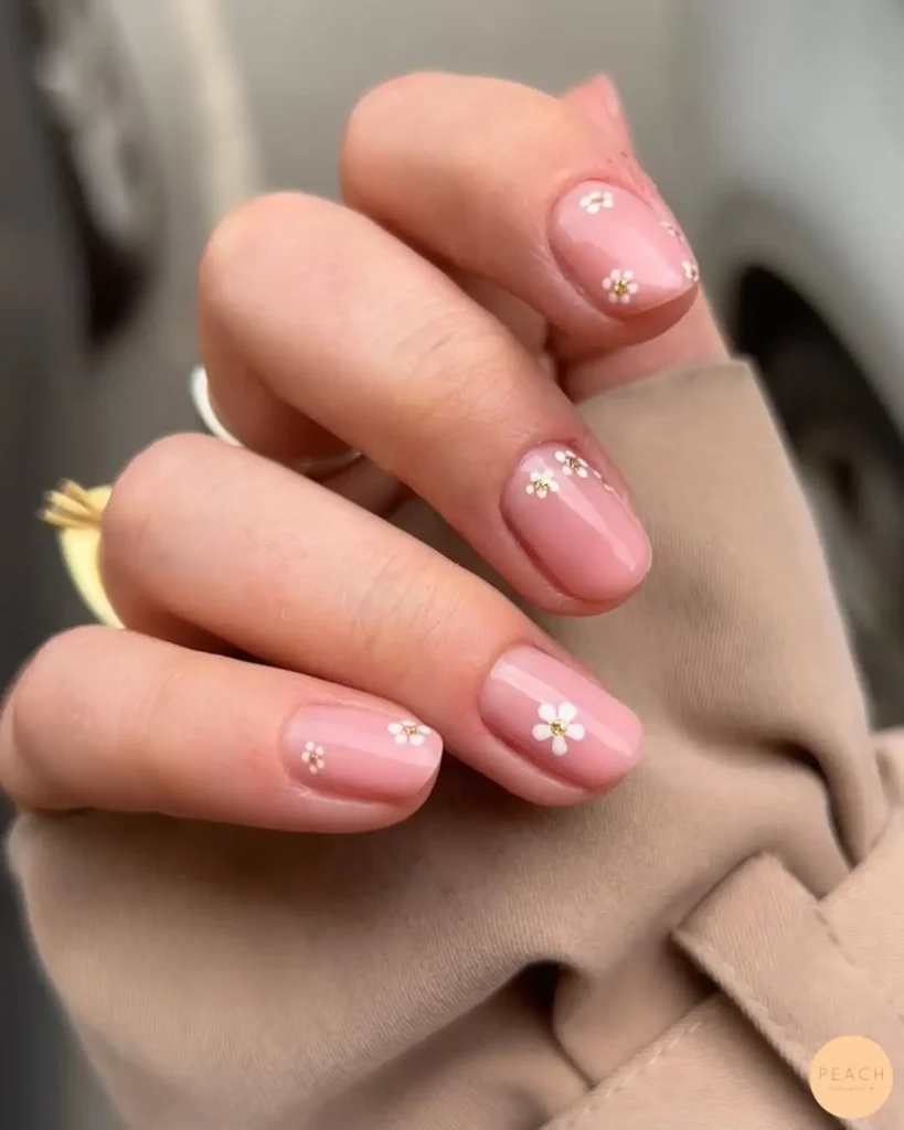 #1. Soft Nude Floral Short Nails