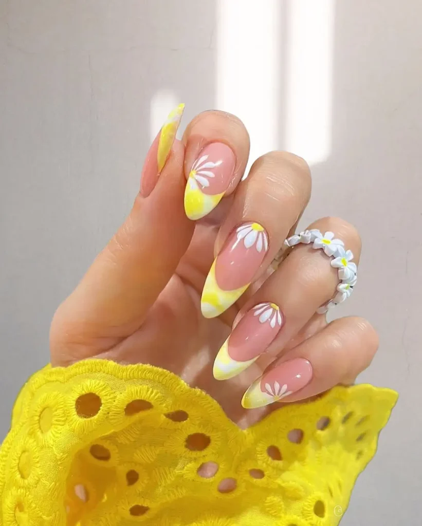 #6. Bright Yellow French with Daisies